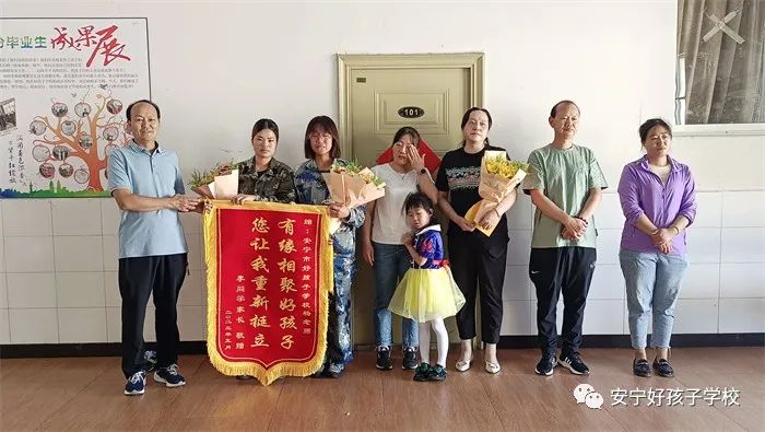 潤物無聲,感恩有聲。為表達(dá)謝意,小李同學(xué)的父母將一面繡有“有緣相聚好孩子,您讓我重新挺立”字樣的錦旗贈(zèng)給學(xué)校和孩子的班主任楊老師,以此感謝學(xué)校和老師對(duì)孩子的辛勤培育。
