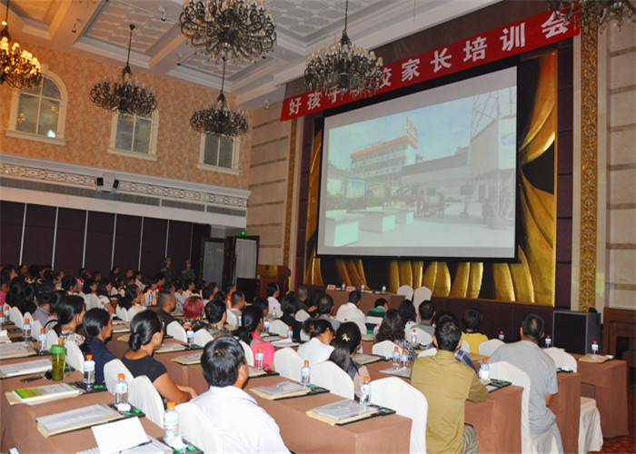 2014年8月9日下午,安寧市好孩子教育培訓(xùn)學(xué)校在舉辦了暑期家長(zhǎng)培訓(xùn)會(huì)。來(lái)自湖南、貴州、浙江及云南各州、市、縣的學(xué)生家長(zhǎng)共計(jì)216人參加了會(huì)議。學(xué)校校長(zhǎng)魯植、常務(wù)校長(zhǎng)匡建民、副校長(zhǎng)趙培亨、副校長(zhǎng)周榕樺、校長(zhǎng)助理李新紅、行政辦公室主任夏藝璇、總教官毛積敏等學(xué)校領(lǐng)導(dǎo)及部分班主任出席了會(huì)議。