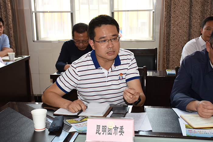 2019年4月19日上午,昆明市人大常委會黨組成員蘇宇率領(lǐng)市人大社建委主任和松華、副主任強東育、團市委書記郝國棟、市教育體育局副局長呂麗、市司法局法律事務(wù)處處長何茹等一行10人,在安寧市人大常委會黨組書記、主任尹貴生、安寧市人民政府副市長、市公安局局長劉文先等領(lǐng)導(dǎo)的陪同下蒞臨我校調(diào)研指導(dǎo)工作。