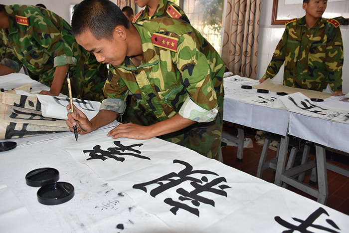 談到學(xué)校的書法活動(dòng),授課老師韋昌毅頗有感觸,他說(shuō)道:“好孩子學(xué)校書法進(jìn)課堂在校園內(nèi)深入開展,學(xué)生的軟筆書寫都越來(lái)越規(guī)范了,學(xué)習(xí)態(tài)度也越來(lái)越端正了。書法進(jìn)課堂的目的并不是為了培養(yǎng)書法家,而是為了讓學(xué)生在書中領(lǐng)悟做人的道理,激發(fā)學(xué)生對(duì)祖國(guó)傳統(tǒng)文化的熱愛之情。孩子們?cè)陂L(zhǎng)期的書法練習(xí)中,需要靜心、細(xì)心和恒心,而這,恰恰能影響孩子的一生。學(xué)校領(lǐng)導(dǎo)每年投入上萬(wàn)元為學(xué)生配備筆、墨、紙、硯等書法教學(xué)用品,除常規(guī)的課堂,還每月定期開展比賽,且每次都開展得有聲有色,讓書法教育進(jìn)課堂工作真正落到了實(shí)處,是相當(dāng)接地氣的!