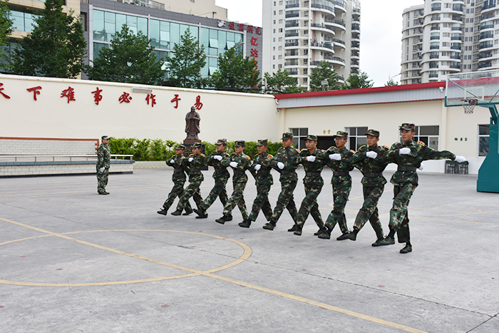 基本的隊列表演完畢后,女生方隊進行了《女兵風采》女兵操表演,鏗鏘亦溫柔,舉手投足間煥發(fā)出勃勃生機,贏得了陣陣喝彩。伴隨著震耳欲聾的吶喊聲,男生方隊出場了!他們個個斗志昂揚,勢如霹靂,為我們完整地展示了一套軍體拳,展現(xiàn)了當代軍人的風采。