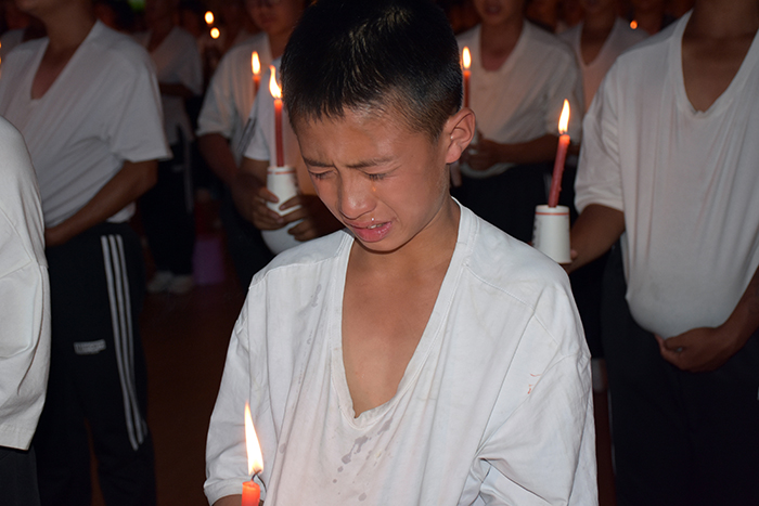 晚上的感恩活動在多媒體教室舉行。首先,孩子們觀看了感恩視頻,隨后手捧蠟燭,深情地唱著《燭光里的媽媽》、《媽媽我想你》,在跳躍的燭光里,母親的形象一下子高大起來。不經(jīng)意間,淚水竟掛滿了臉頰,記憶的觸角也伸得很遠(yuǎn)很遠(yuǎn),忽然想起母親總是嘮叨地數(shù)落著自己亂花錢,埋怨著自己不好好上學(xué),擔(dān)心著自己是否吃得飽、穿得暖?說著她自己很多東西“不愛吃”...... 原來孩子們無比懷念的時光,是母親陪伴他們奔跑的時光;他們無比眷戀的味道,是母親親手做出來的味道,也是香味中蘊含的母愛的味道,突然間對母親的思念也顯得愈加強烈!對著鏡頭,他們還一一為自己的母親送上節(jié)日的祝福。最后,孩子們用《天空之城》、《天之大》,淚流滿面地表達了對母親的愧疚與思念。