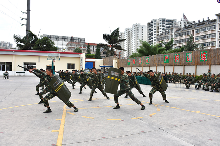 基本隊列動作表演結(jié)束后,各方隊在教官的指揮下進行了擒敵拳、應(yīng)急棍、手語操、舞蹈、合唱、盾牌操等表演。同學(xué)們整齊的隊伍、精準(zhǔn)的動作、昂揚的士氣、嘹亮的軍歌、優(yōu)美的旋律、燃燒的激情贏得了陣陣掌聲。