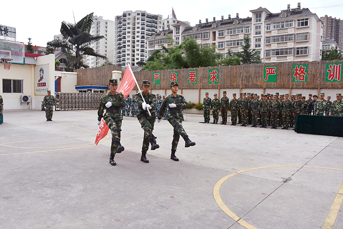 上午九時,同學(xué)們軍容嚴(yán)整、英姿颯爽、步履堅定、精神抖擻地入場,進行了莊嚴(yán)的升國旗儀式,隨后軍訓(xùn)匯報表演正式開始。