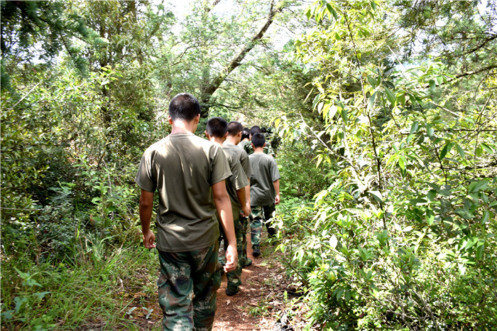 短暫的動物觀賞環(huán)節(jié)后,孩子們開始了長度近七公里的環(huán)山徒步拉練,山里的道路是崎嶇的,經(jīng)過幾日的持續(xù)降雨,很多地方甚至雜草密布,泥濘不堪。但飽覽了沿途美景的孩子們清楚,無限風光在險峰,只有穿過眼前的荊棘,才能領略最美的自然風光。心中有了這樣的信念,路途中的困難和挫折似乎也不值一提了,孩子們拿出逢山開路、遇水架橋的決心和勇氣互幫互助、互相鼓勵,終于爬完一座小山。果然不負期望,這里波光粼粼,湖光山色在周圍綠樹的掩映下十分動人,一路的疲憊也一掃而空。