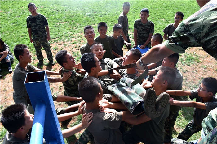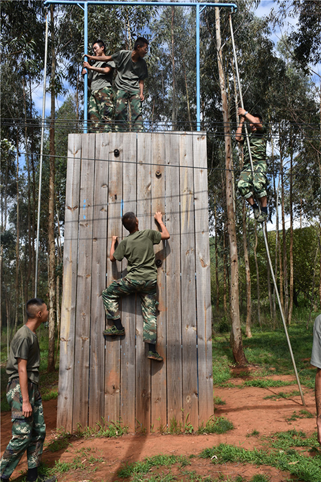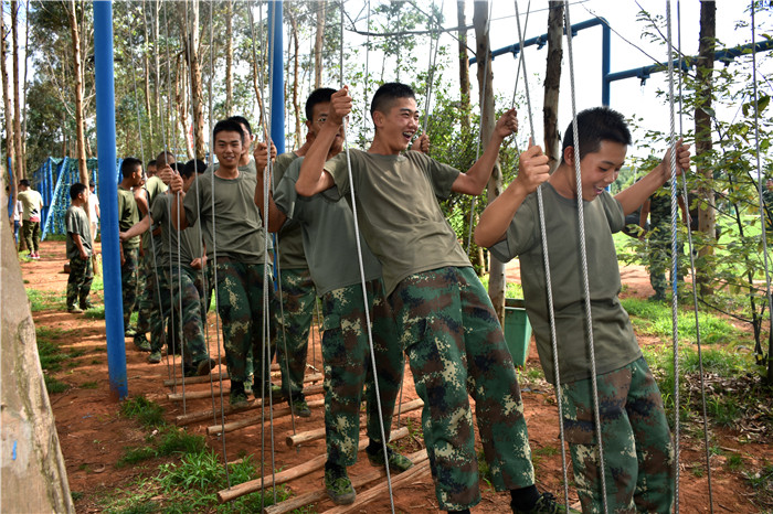 午餐時間,孩子們回到莊園落座飯桌,品嘗了特色美食佳肴。飯后稍作休整,便是此行的重點活動——戶外拓展訓練。拓展活動在老師的耐心講解和簡短的“戰(zhàn)前”熱身運動后拉開了帷幕。孩子們分成兩隊比拼,在各隊隊長的帶領下,伴隨了各隊振奮人心、催人奮進的口號和加油聲,同學們陸續(xù)挑戰(zhàn)了百米空跑、翻越高墻、蕩橋、攀巖、信任背摔等10余個項目;顒又,孩子們始終保持飽滿的熱情、高昂的斗志、認真的態(tài)度,積極參與,用心體會,努力完成著每一個項目。雖然在挑戰(zhàn)過程中,有的孩子有過膽怯、有過害怕,但在老師的幫助和隊友們響亮的加油打氣聲中,他們沒有退縮、沒有放棄,憑借著頑強的毅力、堅定的信念和團結(jié)協(xié)作的精神通過了重重難關考驗。