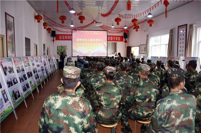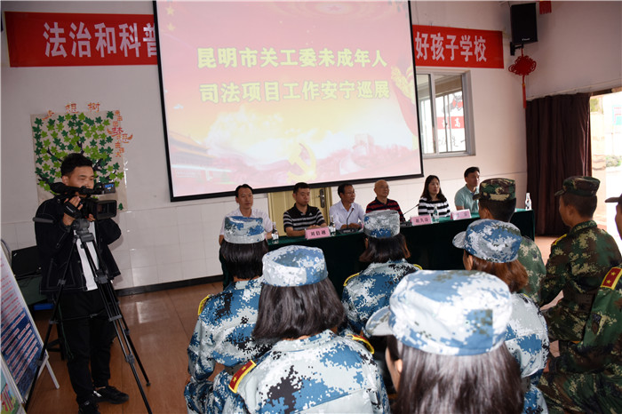 活動(dòng)開始,趙主任首先就未成年人司法項(xiàng)目工作在預(yù)防青少年犯罪和青少年觸法權(quán)益維護(hù)工作中的重要性,以及政府在開展未成年人司法保護(hù)工作中的努力和成效,向大會(huì)作了精彩致辭。隨后,趙主任還對孩子們作了殷切勉勵(lì):“這是我第四次來好孩子學(xué)校,雖然每一次來基本都是新面孔,但每一次來給我的印象都很深,很感動(dòng)。我曾是一名軍人,孩子們現(xiàn)在端正的坐姿、整齊的鼓掌以及良好的精神面貌,都讓我無比的自豪和欣慰,你們都是好孩子,出去也會(huì)是一個(gè)好兵。希望孩子們珍惜好人生的經(jīng)歷,珍惜好在好孩子的這段時(shí)光,努力提升自己,樹立遠(yuǎn)大目標(biāo),將來做一個(gè)德才兼?zhèn)涞娜恕!?br style="font-family: ;"> 隨后,趙主任一行在我校魯植校長的陪同下,深入學(xué)校教學(xué)樓、宿舍樓等實(shí)地查看了校園環(huán)境,并在多媒體教室觀看了學(xué)校教學(xué)活動(dòng)短片。其間,魯校長向趙主任詳細(xì)匯報(bào)了學(xué)校近期的各項(xiàng)教育教學(xué)工作開展情況。聽后,趙主任對我校的各項(xiàng)工作給予了高度肯定,尤其是夸贊學(xué)校法治宣傳教育開展得有聲有色,每年都有不一樣的新內(nèi)容呈現(xiàn)出來,無愧于“昆明市青少年法治教育基地”這個(gè)光榮稱號。