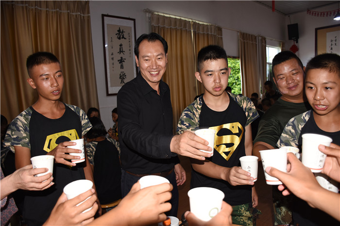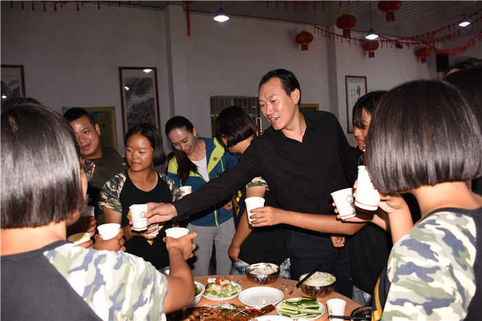 下午,孩子們幫著洗菜、打掃衛(wèi)生,大家忙碌了一個下午,香噴噴的飯菜終于出鍋上桌了。晚上六點,全體師生在餐廳就坐,魯校長作了中秋致辭后,大家便開心地吃了起來!有些同學(xué)還相互舉杯表達節(jié)日的祝福,只聽見一浪高過一浪的“祝爸爸媽媽中秋節(jié)快樂”、“祝老師們中秋節(jié)快樂”的祝福語響徹餐廳。席間,魯校長也被大家的熱情感染,忍不住走到孩子們中間敬茶祝福?粗虒W(xué)中嚴(yán)厲的校長,生活中卻是如此關(guān)切地噓寒問暖、和藹可親,像父母,又像兄長,同學(xué)們非常高興!整個場面洋溢著歡快的節(jié)日氛圍。