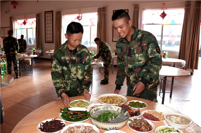 為了準(zhǔn)備豐富的年夜飯,老師和同學(xué)們從上午就開始忙碌著,一起幫學(xué)校廚師們打下手。同學(xué)們有的撿菜,有的洗碗,有的洗菜......到了下午,一盤盤色香味俱全的菜肴就呈現(xiàn)在大家面前,伴隨著隆隆的鞭炮聲,年夜飯開始了。