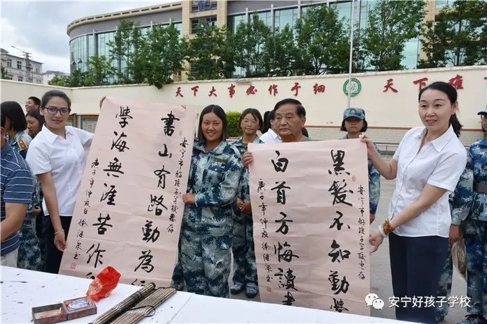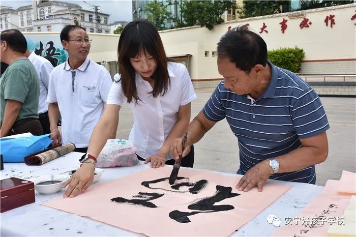 2020年6月27日,在安寧市關工委常務副主任李庭貴的帶領下,安寧市“五老”領導鄧成列(省勞模)、山萬偉、楊貴福、楊長生、徐繼泉(中國書法家),安寧市詩書畫二組朱正才等一行近30名退休老領導、老干部與我校共同開展“心系下一代,牽手筑未來”活動。