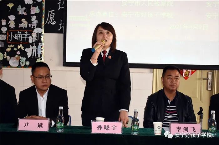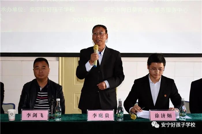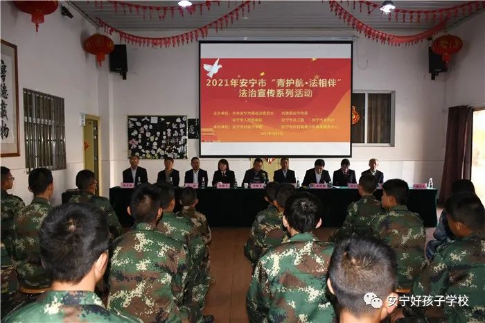 為加強(qiáng)青少年法治教育和思想道德教育,預(yù)防和減少未成年人違法犯罪,提高未成年人自我保護(hù)能力,推進(jìn)依法治市,建設(shè)平安安寧, 2021年4月9日上午, 由市委政法委、共青團(tuán)安寧市委、市人民檢察院、市關(guān)工委、市未司辦主辦,安寧市向日葵青少年事務(wù)服務(wù)中心、安寧好孩子學(xué)校承辦的“青護(hù)航•法相伴”法治宣傳系列活動(dòng)在我校多功能室舉行。市委政法委副書(shū)記李劍飛、市人民檢察院第四檢察部主任孫曉宇、市關(guān)工委專職副主任李庭貴、團(tuán)市委副書(shū)記徐濟(jì)炳、市人民檢察院和市關(guān)工委部分“五老”成員等領(lǐng)導(dǎo)出席了本次活動(dòng);顒(dòng)由團(tuán)市委副書(shū)記徐濟(jì)炳主持。