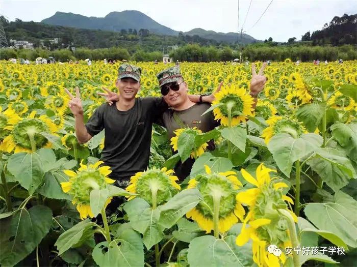 下山后,經過小憩,孩子們便一鼓作氣地朝牧羊湖挺進,迫不及待想要一睹金色螳螂川的向日葵美景。兩岸“柳市村村接,松燈點點明。家家傾蟻酒,夜夜燴魚羹”這是古人對于安寧螳螂川的描繪。土地平曠,屋舍儼然,往來種作,怡然自樂,似有桃花源記之掠影,儼然一副逍遙自在景象。而今時的螳螂川,恰是一年中最好看的時候,百萬株向日葵進入盛花期,整個一金色海洋,微風吹散晨霧,漾起層層花浪,剎那間把一方山谷染得金黃。