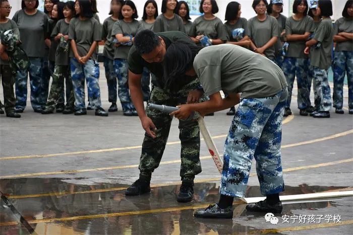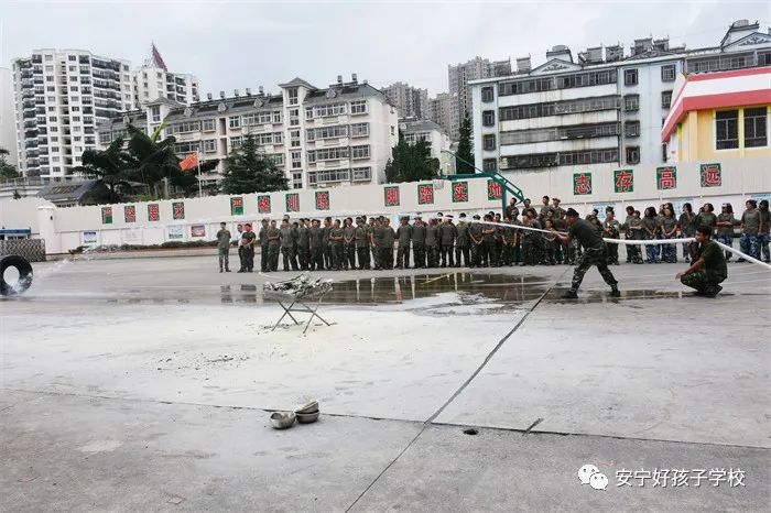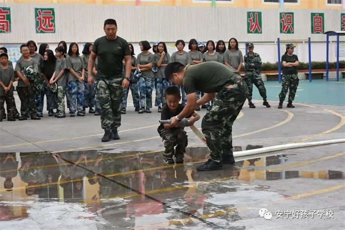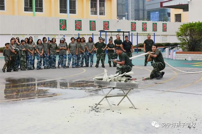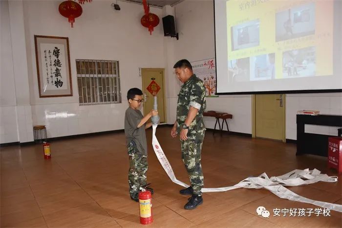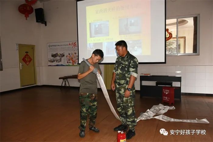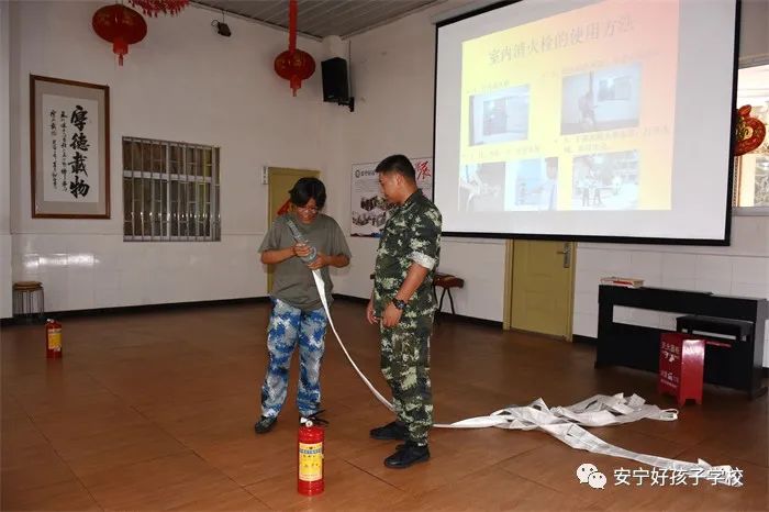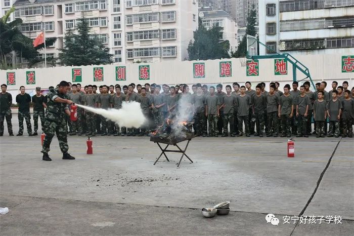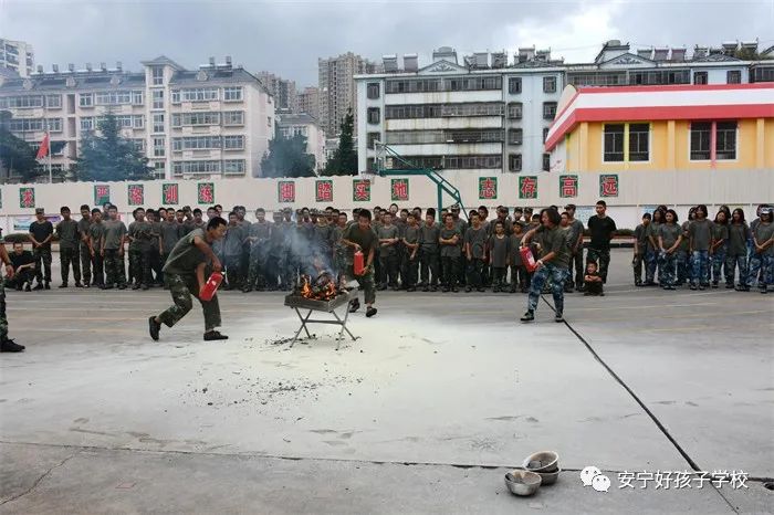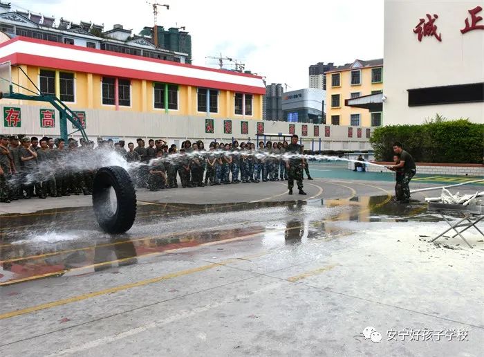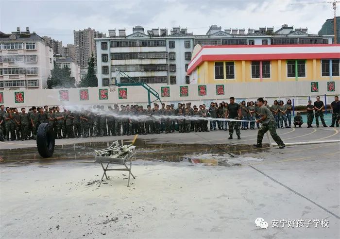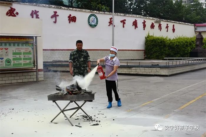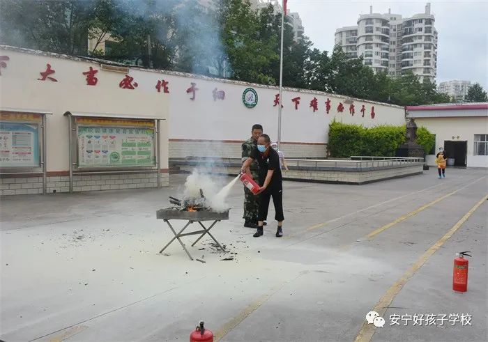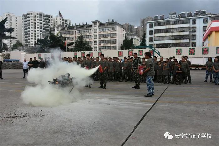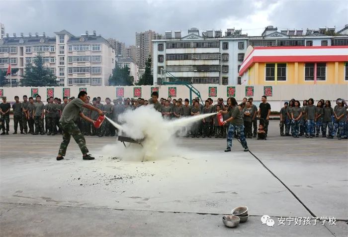 最后,進(jìn)行了撲救演練。操場上的木材點燃后,火苗迅速變成了熊熊大火,老師開始現(xiàn)場演示滅火設(shè)備(滅火器、高壓水槍)的使用方法,并指導(dǎo)全部學(xué)生親自操作演練。
