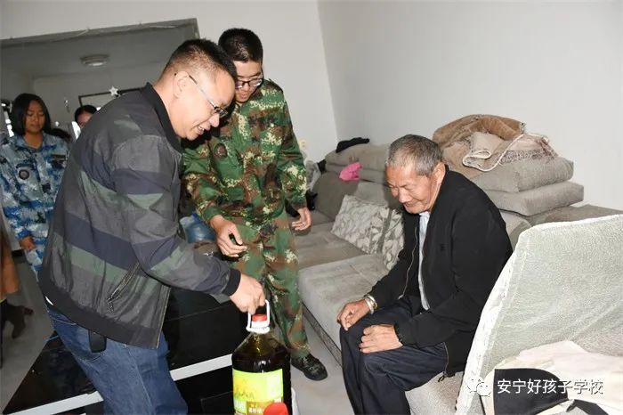 上午九點(diǎn),在光明社區(qū)李金蓮書記及副主任張蕊的陪同下,學(xué)校執(zhí)行校長尹斌親自帶領(lǐng)部分老師和學(xué)生,深入老人家中,噓寒問暖地與老人聊天拉家常,關(guān)切地詢問老人的身體健康狀況和生活起居情況,叮囑他們要保重身體。每到一戶,尹校長和孩子們都把提前準(zhǔn)好好的生活用品送到老人手中。