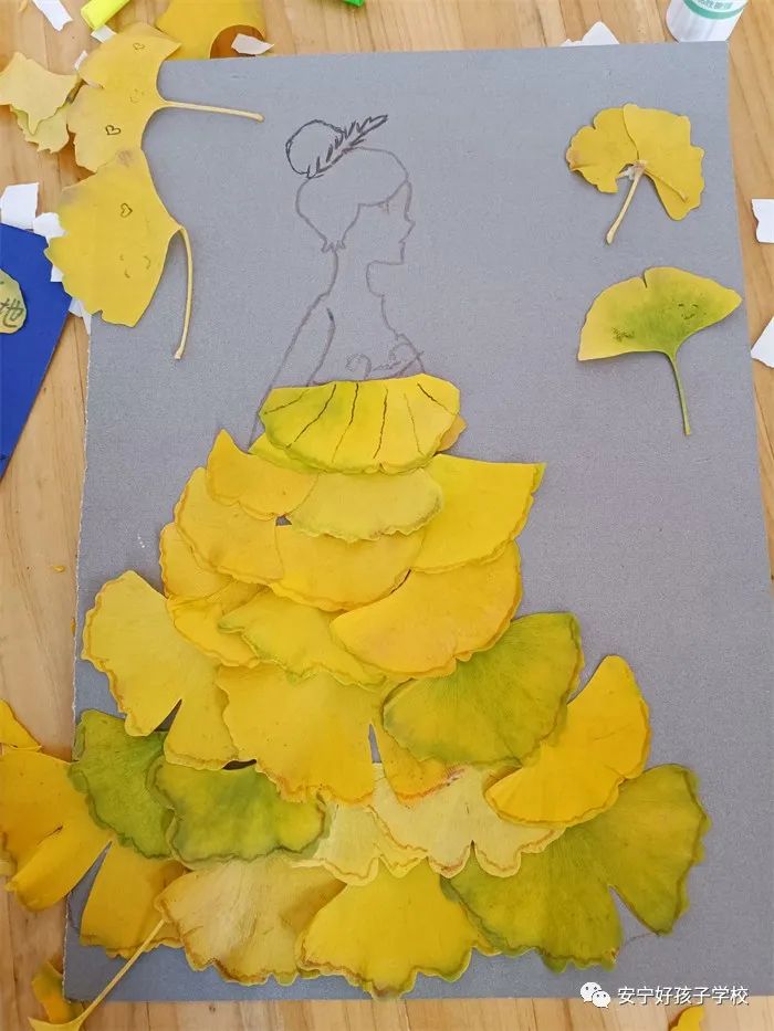 活動(dòng)中,師生們熱情高漲,全身心投入制作。通過(guò)壓平、粘貼、晾干等方法,巧妙地利用不同顏色和形狀的樹(shù)葉,或是平鋪制圖,或是層層疊加,在卡片上繪制圖案。很快,一片片不起眼的葉子,經(jīng)過(guò)一雙雙巧手的精心雕琢,便成了一件件栩栩如生的藝術(shù)品,有舞者、公主裙、圣誕樹(shù)、花朵等銀杏畫(huà),有的孩子還在葉子上寫(xiě)下了滿滿的祝福和對(duì)未來(lái)的憧憬。一片片銀杏葉頓時(shí)像被賦予了生命一樣,鮮活起來(lái)。