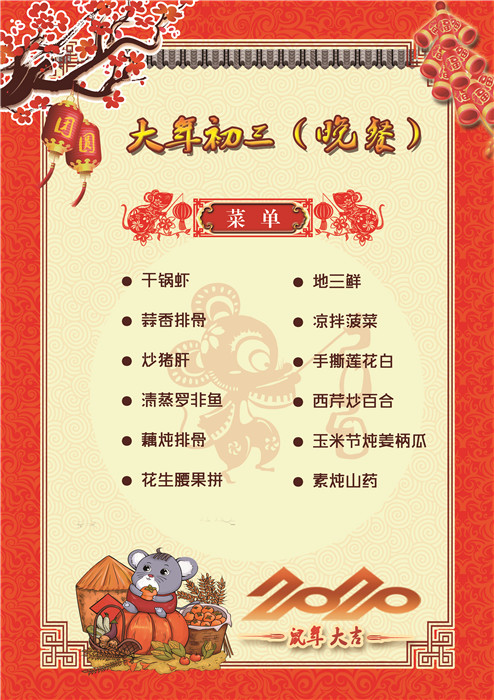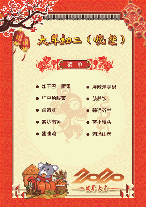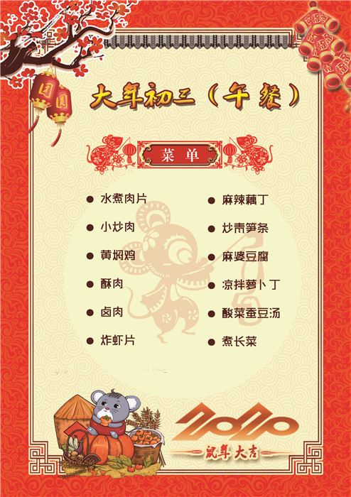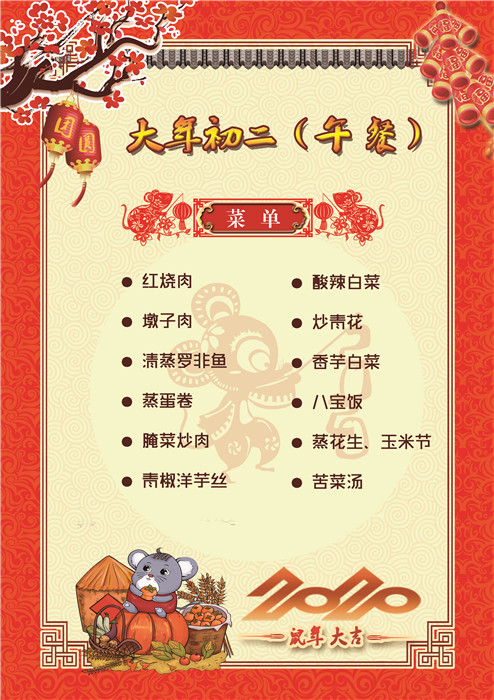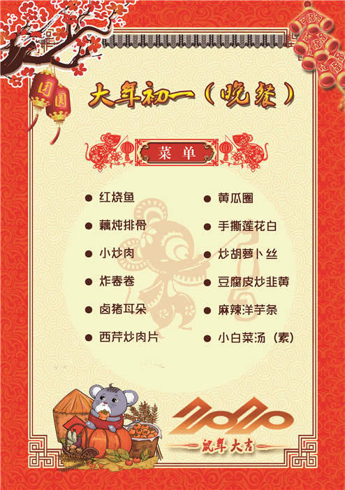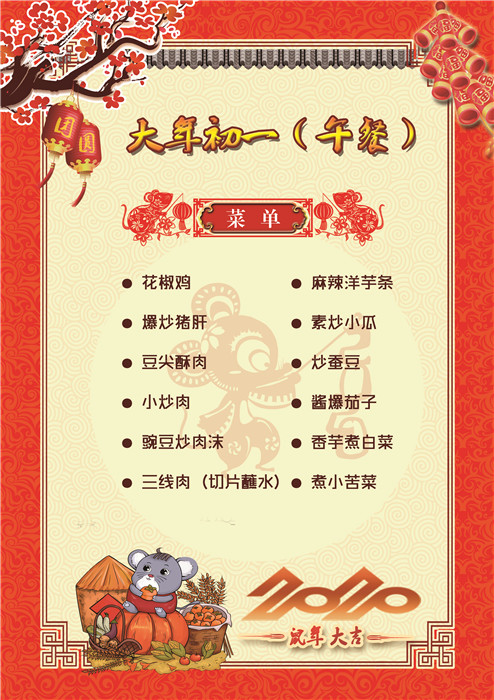 過年了 !孩子們吃什么?這是學校領導幾天來一直思考的問題。經過與學校營養(yǎng)師、食堂廚師們多次商議后,本著營養(yǎng)、健康、不浪費,又要保證孩子每餐都能吃上新鮮可口的飯菜,終于議定了菜單,現(xiàn)予以公布。祝孩子們新年快樂!祝全體家長萬事如意!
