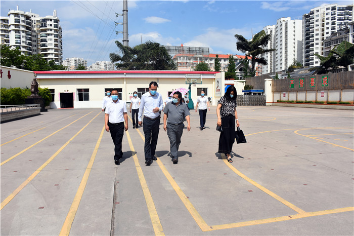 2020年5月18日下午,安寧市教體局教育科科長畢加昌率局機關(guān)干部王艷莉、安寧市疾控中心梁醫(yī)生、市基教中心李老師等蒞臨我校檢查指導疫情防控工作。