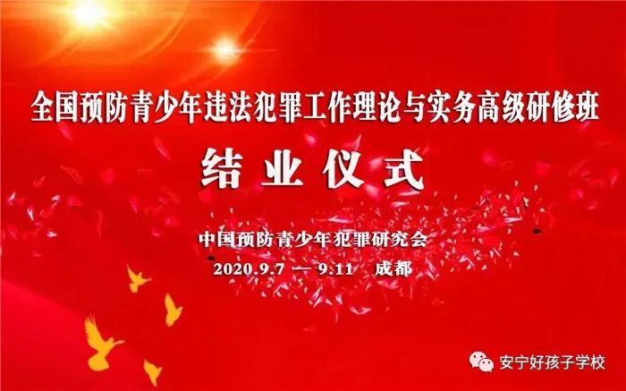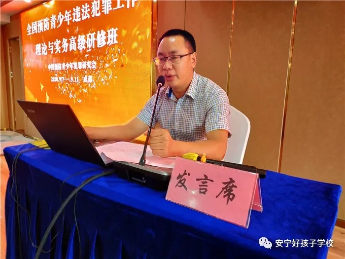 2020年9月7日—11日,中國預(yù)防青少年犯罪研究會在成都舉辦了第十一期“全國預(yù)防青少年違法犯罪工作理論與實務(wù)高級研修班”,我校執(zhí)行校長尹斌在培訓會上作辦學經(jīng)驗交流,辦學成果得到了參會領(lǐng)導及學員們的高度認可。