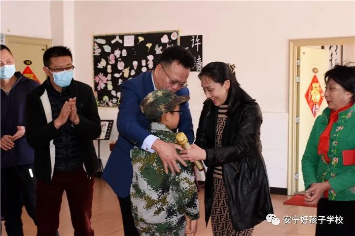 在溫情的音樂聲中,當(dāng)小剛同學(xué)轉(zhuǎn)身看到一大家人站到自己的身后時,激動地從隊列中飛奔到爸爸媽媽懷里,緊緊和他們相擁,他更沒想到會有那么多親人來接自己回家!在和親人的久違擁抱中,他的眼里泛起了晶瑩的淚花。
