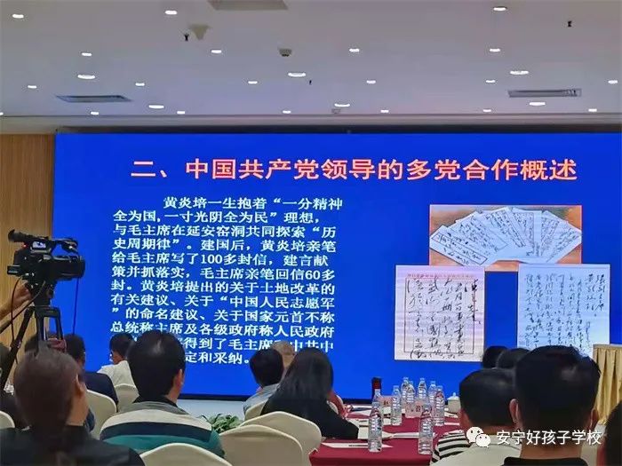 隨后,趙部長從“一部百年黨史,就是一部百年統戰(zhàn)史”方面,就中國共產黨領導的多黨合作進行了概述。闡明每一個民主黨派無論是在革命年代還是建設時期,都發(fā)揮過不可替代的作用,做出過積極的貢獻,都有與中共“血流在一起、汗灑在一處”的光榮歷史。趙部長還重點從民建,尤其是云南民建認真履行參政黨職能,盡心盡力開展社會服務方面,講述了許多生動鮮活的故事、有血有肉的榜樣、蕩滌靈魂的信仰和踏石留印的記憶。