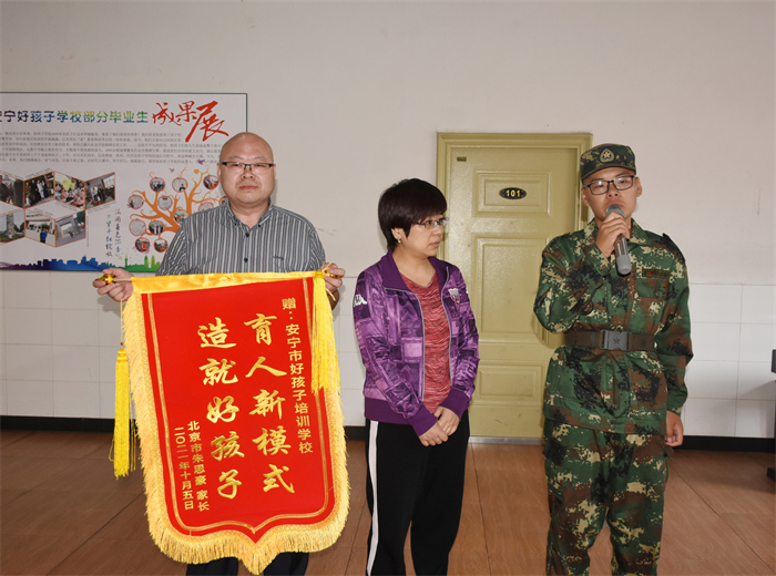 為表達謝意,朱思豪家長將一面繡著“育人新模式,造就好孩子”字樣的錦旗贈給學校,以此感謝學校對孩子的辛勤培育,我校教務主任張汝云代表學校接下了這面沉甸甸的錦旗。