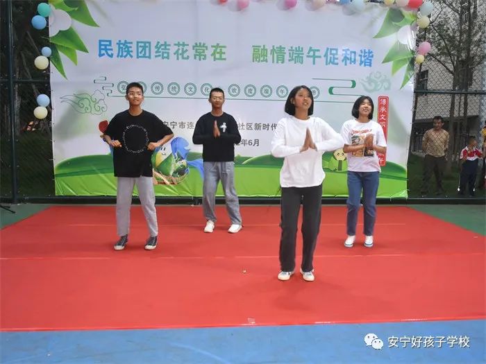 在端午節(jié)前一天,由安寧市連然街道光明社區(qū)新時(shí)代文明實(shí)踐站舉辦的2022年“民族團(tuán)結(jié)花常在,融情端午促和諧”主題活動(dòng)在光明社區(qū)舉行,我校受邀參加,并組織部分學(xué)生到場(chǎng)表演了精彩節(jié)目。孩子們優(yōu)美的舞姿、燦爛的笑容贏得了臺(tái)下雷鳴般的掌聲。節(jié)目后,孩子們還爭先恐后進(jìn)行了端午知識(shí)搶答,他們豐富的知識(shí)儲(chǔ)備,令現(xiàn)場(chǎng)觀眾贊嘆不已;顒(dòng)尾聲,學(xué)校執(zhí)行校長尹斌更是親切地走到社區(qū)居民身邊,親手為他們遞上粽子,并送上“端午吉祥安康”的美好祝福。