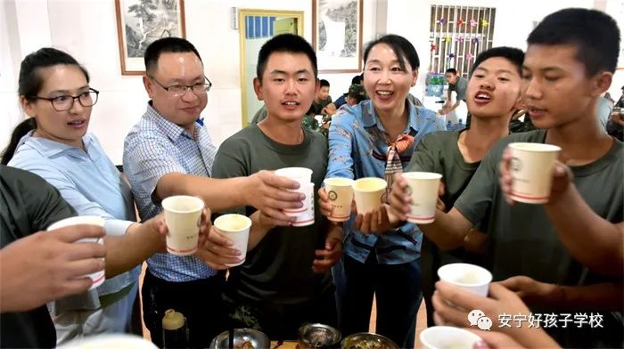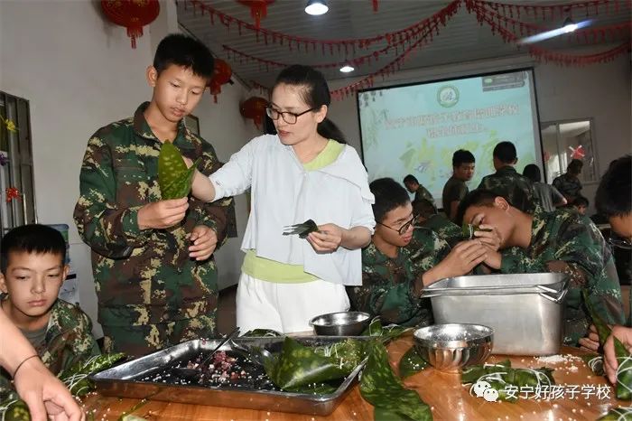 傍晚,一個(gè)個(gè)香氣撲鼻的“粽子”新鮮出爐端上了桌,一桌桌色香味俱全的盛宴便呈現(xiàn)在大家眼前。開飯前,尹校長向全校師生表示節(jié)日的問候與祝福,并語重心長地說道:“孩子們,今年的端午節(jié)對(duì)于大家來說,一定意義非凡,希望你們?cè)谶@個(gè)轉(zhuǎn)折點(diǎn),好好學(xué)習(xí),感恩自己的父母,做一個(gè)真正的好孩子,做一個(gè)對(duì)社會(huì)有用的人”。聽著尹校長親切又有力量的一番話,孩子們感動(dòng)不已。隨后,在尹校長“端午節(jié)晚餐現(xiàn)在開席”的一聲令下后,大家共同舉杯正式開始了晚宴。孩子們一邊吃著豐盛的晚餐,一邊迫不及待地解開升騰著熱氣的粽子,心滿意足地品嘗著自己的“作品”,笑容分外甜蜜。席間,尹校長還親切地走到孩子們中間敬茶祝福。看著教學(xué)中嚴(yán)厲的校長,生活中卻是如此關(guān)切地噓寒問暖、和藹可親,像父母,又像兄長,同學(xué)們高興不已!鏡頭下,孩子們不時(shí)向父母老師道祝福,和同學(xué)相共勉。