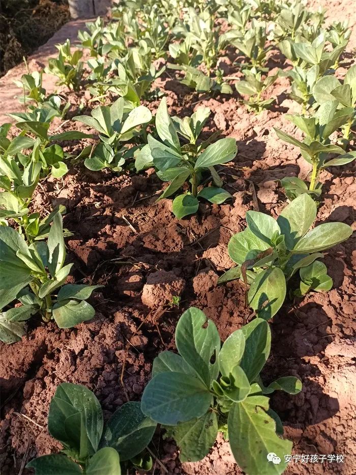 孩子們干活累了,就饒有興致地去觀察之前的同學所取得的階段性成果。或是看看正開花的蠶豆,或是瞧瞧倔強生長的豌豆和蘿卜,或是聞聞綠油油的青菜,或是摸摸即將可以享用的包菜或苤藍...... 實物可比圖片生動有趣多了,它們的生長形態(tài)如此不同,成長周期也不一樣,卻又都生長在同一片土地上,大自然的無限魅力,讓孩子們的眼睛更加敏銳,思維也活躍起來。