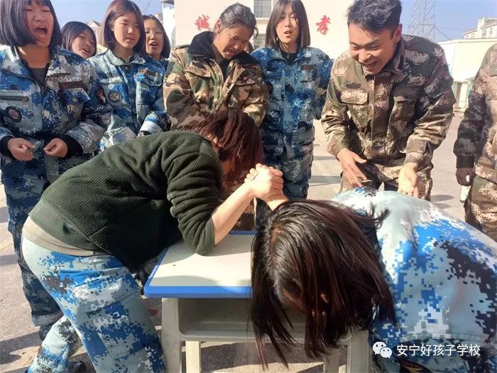 有的由于力量懸殊,很快敗下陣來;有的趁對方不備,猛往自己懷中一壓,還沒等對方反應(yīng)過來,手已經(jīng)被壓在桌上了;有的相持不下,鼓著腮、瞪著眼,臉漲得像個紅蘋果;有的不甘示弱,拼命想把對方的手壓下去,無奈還是沒有還手之力。場上的啦啦隊員,有的大聲喊加油,有的急得直跺腳,有的不停地說道“他太強了,簡直是秒殺!”