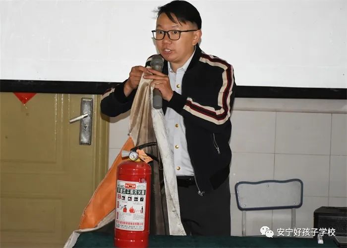 為了讓理論與實(shí)踐相結(jié)合,安全知識(shí)講座結(jié)束后,學(xué)校還組織師生進(jìn)行了消防應(yīng)急演練活動(dòng)。在緊張的逃生演練環(huán)節(jié),孩子們?cè)诶蠋煹闹敢,用濕毛巾捂住口鼻,彎腰曲背小步快走,迅速有序地按照緊急預(yù)案的疏散路線離開宿舍、教室,成功撤出,安全到達(dá)指定位置,全程僅用時(shí)一分鐘。隨后進(jìn)行火災(zāi)撲救演練活動(dòng)。演練前,唐老師再次詳細(xì)講解了滅火器、滅火毯的正確使用方法,并示范動(dòng)作要領(lǐng),全體師生認(rèn)真學(xué)習(xí),并親身體驗(yàn)。