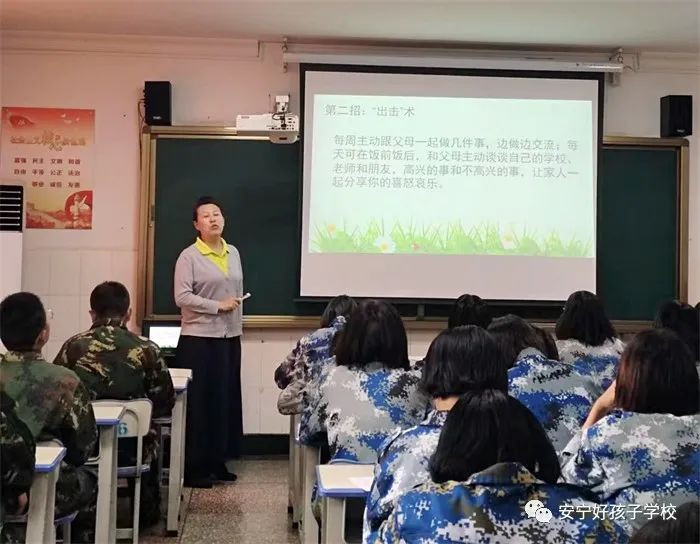 趁著孩子們反思自己、體諒父母的時機,王老師順勢引入與父母溝通的小妙招:讀心術(shù)、出擊術(shù)、責(zé)任術(shù)、道歉術(shù)、寫信術(shù)、協(xié)議術(shù)、傾聽術(shù)等。簡單的小技巧涵蓋了日常親子溝通中常見問題的多個方面,為那些不知道如何表達(dá)自己、如何找到正確溝通時機的孩子們提供了很好的參考與示范。
