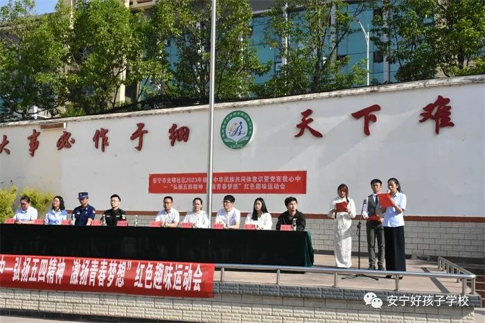 青春逢盛世,奮斗正當時。為深入學習貫徹黨的二十大精神,激勵廣大青年傳承和發(fā)揚“五四”精神,進一步增強青年榮譽感和使命感, 2023年4月28日,安寧市光明社區(qū)團支部與我校聯(lián)合開展“黨在我心中——弘揚五四精神 激揚青春夢想” 紀念“五四”運動 104 周年紅色趣味運動會。