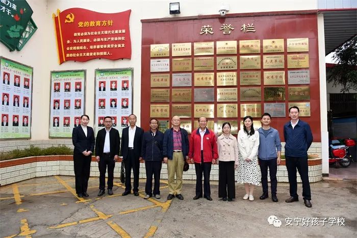 2023年5月15日上午,昆明市關(guān)工委常務(wù)副主任、市未司項(xiàng)目指導(dǎo)小組副組長管宏亮,昆明市未司項(xiàng)目指導(dǎo)辦主任趙久詩,辦公室主任牛晶珊、副主任鄭蓉蓉,在安寧團(tuán)市委書記高源、市關(guān)工委常務(wù)副主任李庭貴、團(tuán)市委副書記徐濟(jì)炳、市“五老”代表?xiàng)钯F福等領(lǐng)導(dǎo)的陪同下,蒞臨我校調(diào)研指導(dǎo)工作。