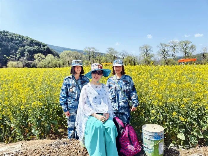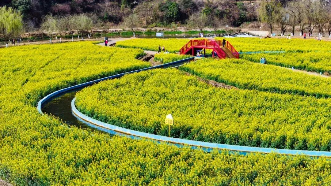 “油菜花開春意濃,滿目金黃惹人醉!毖巯拢怯筒嘶ㄊ⒒ㄆ,一朵朵、一簇簇的油菜花,競(jìng)相怒放,金黃色的花海猶如地毯般覆蓋著田野,美如大自然的油畫,煞是惹人喜愛!讓人不禁想去尋芳踏青、賞花觀景;ê=鹄擞縿(dòng),花香襲人,沁人心脾。伴著泥土的芬芳,徜徉在蜜蜂、蝴蝶載歌載舞的花田,如同在斑斕繽紛、流金溢彩的童話世界遨游。大家情不自禁閉上眼細(xì)數(shù)春天的腳步,爭(zhēng)先恐后在金黃鋪就的美景里,搶著上鏡,和春天撞個(gè)滿懷。放眼望去,花海與藍(lán)天白云、遠(yuǎn)山田野、村莊河流相映成趣,勾勒出一幅田園春景圖。