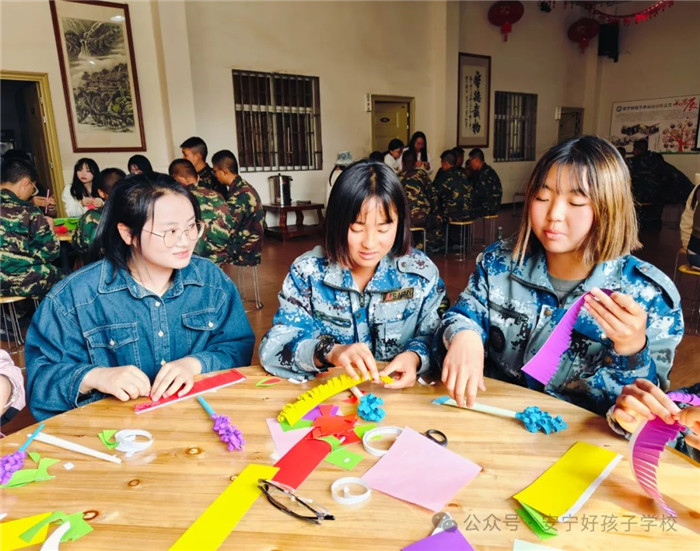 在志愿者們的悉心指導(dǎo)下,同學(xué)們迫不及待開始嘗試,全身心投入,每一步都制作得特別認(rèn)真,遇到不會(huì)的,立馬請(qǐng)教,相互學(xué)習(xí),互相探討。一剪一粘,一扭一捏,一卷一折,一拼一插,花朵的雛形初現(xiàn)。“花邊要卷齊一點(diǎn),不能太緊,松一點(diǎn)可以讓花瓣顯得更有活力。”志愿者們不時(shí)在旁邊指導(dǎo)著。不一會(huì)兒,只見孩子們喜笑顏開,七嘴八舌地說道:“我會(huì)了我會(huì)了,接下來我要換一種顏色做一朵更漂亮的花”“我覺得你這朵小的就很不錯(cuò),紫色的真好看,花小小的也很秀氣,我就喜歡小花”“沒想到這不起眼的小紙片,還能做出如此漂亮的花束” ......孩子們就這樣你一言我一語的交流著。