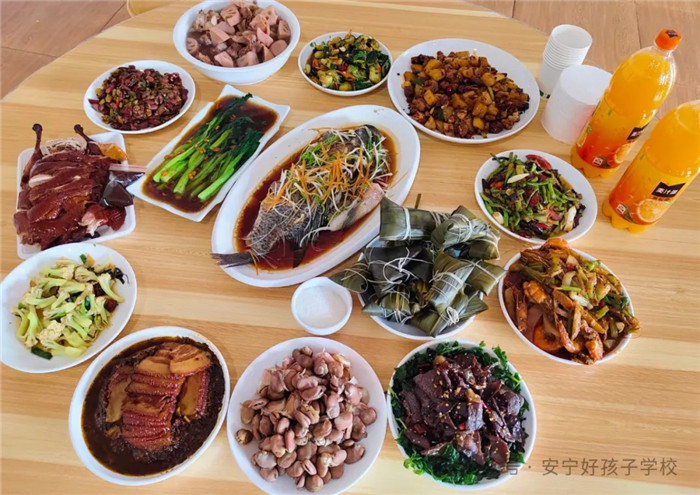 傍晚,一個(gè)個(gè)香氣撲鼻的粽子端上了桌,一桌桌色香味俱全的盛宴便呈現(xiàn)在大家眼前。孩子們一邊吃著豐盛的晚餐,一邊迫不及待地解開升騰著熱氣的粽子,心滿意足地品嘗著自己的“作品”,笑容分外甜蜜。鏡頭下,孩子們不時(shí)向父母老師道祝福,和同學(xué)相共勉。