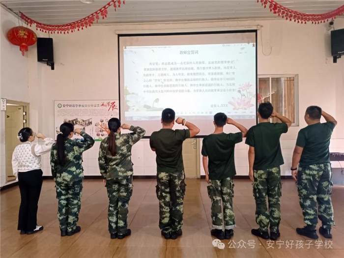 “我宣誓:我志愿成為一名光榮的人民教師,忠誠(chéng)黨的教育事業(yè),貫徹黨的教育方針,遵循教育法律法規(guī),履行教書育人職責(zé)。為黨育人、為國(guó)育才……”這鏗鏘有力的誓言是學(xué)校老師對(duì)師德最好的詮釋,是擔(dān)當(dāng)育人使命的初心。