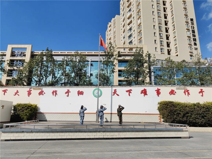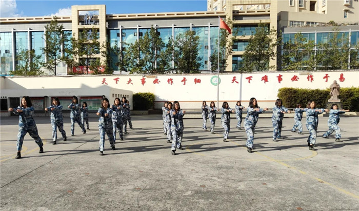 首先,進行的是基本隊列表演!吧韵ⅲ×⒄......”隨著指揮員的口令,同學們按規(guī)定完成了停止間轉法、齊正步行進與立定、敬禮與禮畢等一至八個訓練科目,每個動作都令行禁止,整齊的臂線、鏗鏘的步伐、嘹亮的口號,無不展現(xiàn)了同學們“站、立、行”的隊列規(guī)范和良好的精神風貌。