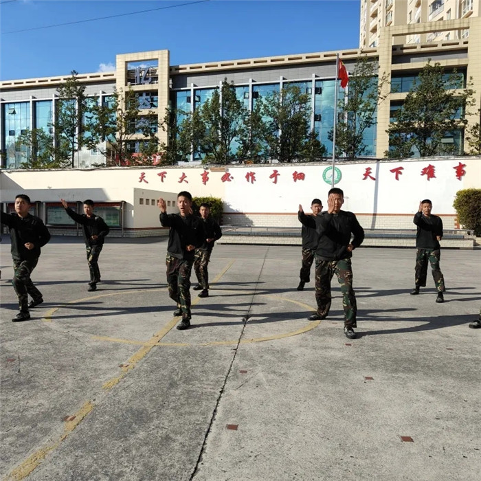 其間,三個方隊穿插表演的《擒敵拳》氣貫長虹。男生們剛勁有力,步伐穩(wěn)健,毫不拖泥帶水,看得人熱血沸騰;女生們英姿颯爽,意氣風發(fā),每一招都虎虎生風,盡顯英勇之姿。整個表演過程中,每個方隊成員們配合默契,動作整齊劃一,每一個抬手、每一個踢腿都充滿力量,彰顯著他們平日里刻苦訓練的成果。