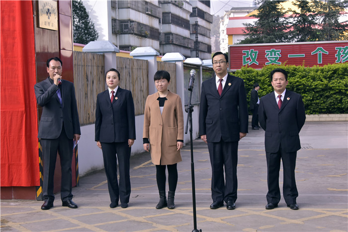 揭牌儀式上,魯校長(zhǎng)介紹了出席活動(dòng)的領(lǐng)導(dǎo)并致歡迎詞;隨后邀請(qǐng)了楊志剛檢察長(zhǎng)與盧敏副局長(zhǎng)為學(xué)校揭牌,全場(chǎng)響起熱烈的掌聲;隨后,楊檢察長(zhǎng)發(fā)表了熱情洋溢的講話:“今天很高興!安寧市人民檢察院與好孩子學(xué)校7月簽訂的《未成年人陪護(hù)教育基地共建協(xié)議》,今天終于落地揭牌了。檢校合作,是深入貫徹習(xí)近平總書(shū)記新時(shí)代中國(guó)特色社會(huì)主義思想的重要舉措;是落實(shí)中央《關(guān)于加強(qiáng)專門學(xué)校和專門教育工作意見(jiàn)》的具體體現(xiàn);是促進(jìn)未成年權(quán)益保護(hù)和犯罪預(yù)防體系建設(shè)的有益嘗試;更是促進(jìn)未成年人健康成長(zhǎng)的有力保障。專業(yè)的人做專業(yè)的事,好孩子學(xué)校辦學(xué)成績(jī)顯著,我們給予高度肯定!感謝好孩子學(xué)校對(duì)我市未檢工作和未成年人權(quán)益保護(hù)做出的重大貢獻(xiàn)。我們相信,基地的建設(shè),對(duì)引導(dǎo)我市廣大青少年樹(shù)立法治理念,減少違法犯罪和維護(hù)自身合法權(quán)益都具有極其重要的里程碑意義。做好未成年犯罪預(yù)防、幫扶,使命光榮,任務(wù)艱巨。今天的儀式只是個(gè)開(kāi)頭,希望我們能夠以此為契機(jī),在接下來(lái)的工作中,本著共建共贏的合作原則,充分發(fā)揮雙方的資源優(yōu)勢(shì),努力把合作引向深入,確;匕l(fā)揮實(shí)效,為未成年人的健康成長(zhǎng)創(chuàng)造良好的社會(huì)環(huán)境,為建設(shè)平安安寧作出更大貢獻(xiàn)!”